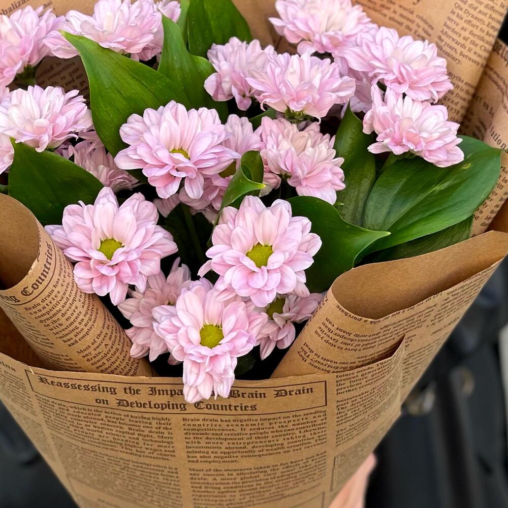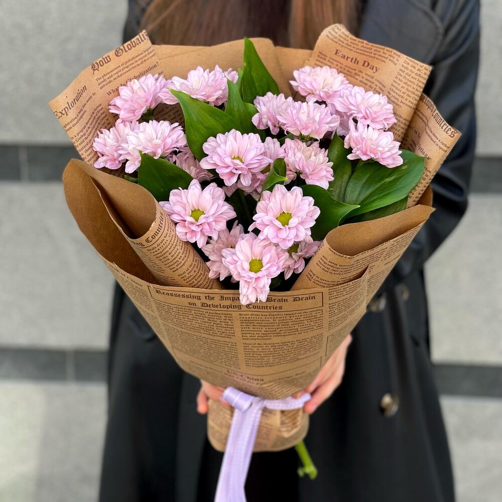 ХРИЗАНТЕМА КУСТОВАЯ РОМАШКОВАЯ С РУСКУСОМ В КРАФТЕ в Орлове